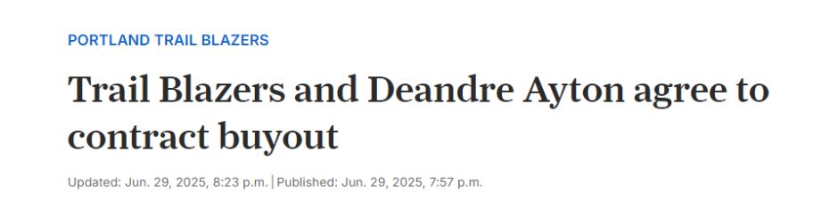 艾顿现在成为了一名完全自由球员。预计需要中锋的球队会追逐艾顿,但他的签约价格将远低于下赛季他在开拓者本应获得的薪水。
